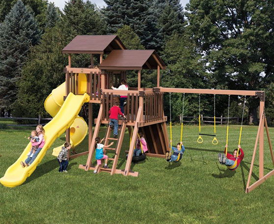 You’ll love watching the kids race outside to swing, slide, and climb all over their new backyard playset. All of our products provide children countless hours of ultra-safe outdoor fun. If one of these tall swing sets caught your eye, you can place an order for it today.