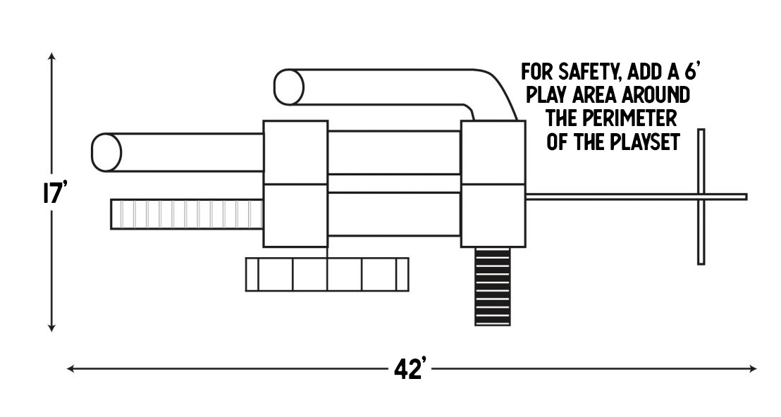 An extraordinary tower playset that will ignite your child’s imagination. Featuring two towers, 5ft and 8ft tall, connected by an 8ft high bridge and a wobbly bridge on the 5ft level. Access the towers via a stairway entrance or a grand stairway for a touch of grandeur. Enjoy the excitement of the 8ft high tunnel express slide and the 8ft step and slide slide. Swing on the 4-position 8ft high swing beam with a 2-chain swing, rubber wheel swing, belt swing, trapeze swing, and ball swing. Unleash their inner acrobat on the space saver monkey bar attached to one of the towers. Safety and endless fun await in the remarkable D48-9 from Adventure World Playsets